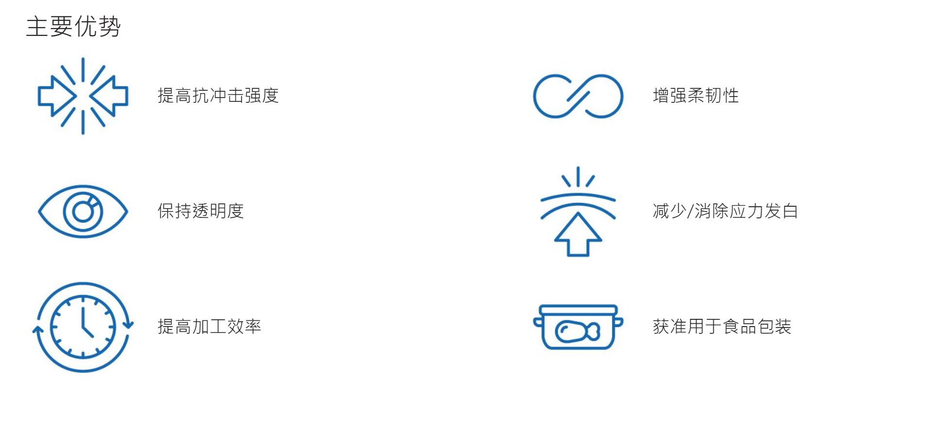 威达美™高性能聚合物与聚丙烯混合时可为您提供经济高效的包装解决方案。应用和优势:提高了抗冲击强度、增强柔韧性、保持透明度、无需更换现有设备、获准用于食品包装、提高加工效率。